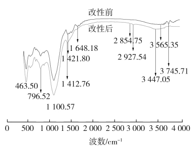 图3为灰渣及硅烷复合改性灰渣傅里叶变换红外光谱图。