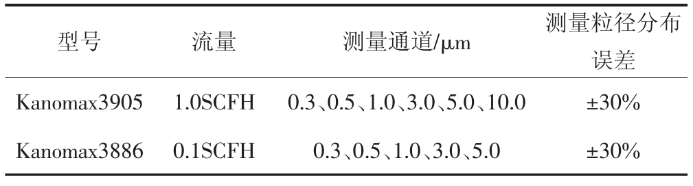 表2 激光尘埃粒子计数器参数