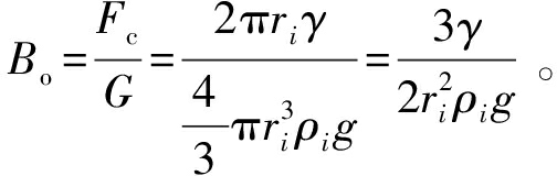 为了表征湿颗粒系统相对内聚力的大小,Nase等[15]提出了一个重要参数,颗粒Bo,定义为最大黏着力与颗粒重力之比