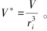 另外一个重要参数为无因次含液量V*[16],定义为液桥的体积与球颗粒半径立方之比,表征湿颗粒系统中含液量的多少。