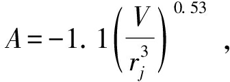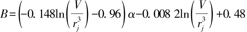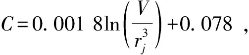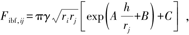 式中: ri、 rj分别为2个颗粒的半径; γ为液体表面张力; α为接触角; h为颗粒间距; V为液桥的体积; A、 B、 C为无因次回归系数。