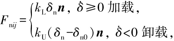 式中:δn0为永久塑性变形量;δn为变形量;kL、kU分别是加载弹性系数和卸载弹性系数;