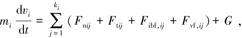 式中:mi为颗粒i的质量;G为颗粒的重力;Ii为颗粒i的转动惯量;t为时间。