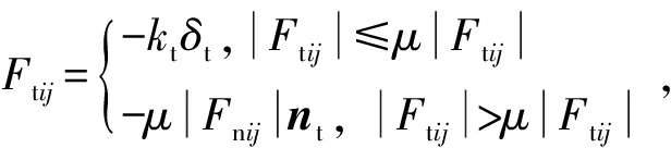 式中:δt为两颗粒间的切向变形量;μ为颗粒间的滑动摩擦系数;