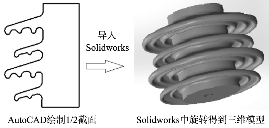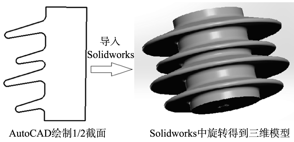 由于大、小伞裙的流场会受到其上、下伞裙的影响,因此,在综合考虑运算速度,同时又不影响到单片大、小伞裙周围流场的情况下,创建如图2所示的绝缘子模型。