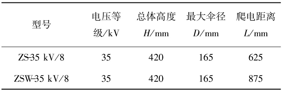 型号电压等级/kV总体高度H/mm最大伞径D/mm爬电距离L/mmZS-35 kV/835420165625ZSW-35 kV/835420165875