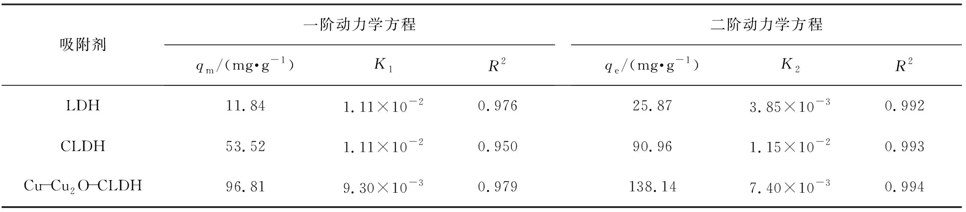 表3 3种LDHs对I-吸附的动力学拟合参数