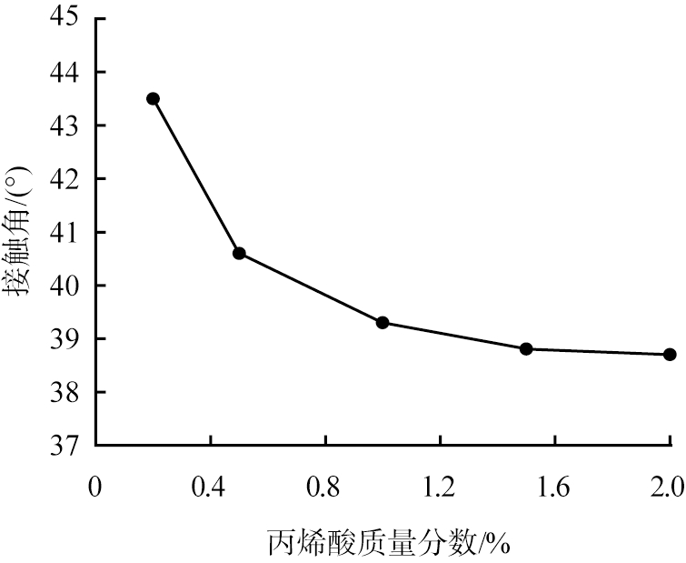 Fig.2 Effect of acrylic acid dosage on the contact angle