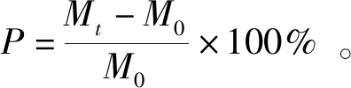 初始质量M0为20.0 g的土壤尘置于φ100 mm培养皿中,喷洒质量分数为3.0%的抑尘剂水溶液至表面充分湿润,纯粹聚合物的质量分数为1.0%,记作抑尘样品。以等量的土壤尘和蒸馏水,重复以上操作,为洒水样品。将样品放入20 ℃、相对湿度45%的恒温恒湿箱中,测定t时刻的样品质量Mt,其含水率