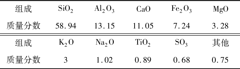 组成SiO2Al2O3CaOFe2O3MgO质量分数58.9413.1511.057.243.28组成K2ONa2OTiO2SO3其他质量分数31.020.890.680.75