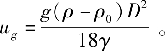 提高土壤尘稳定性是降低风力扬尘的根本方法。土壤尘聚集体的粒径增加,PM10的排放量呈幂级下降[8]。悬浮状态下,在重力加速度g、空气密度ρ0、空气黏度γ和颗粒物密度ρ已定时,根据式(2),其沉降速度ug取决于直径D[9]。D增加,则降尘快、空中滞留时间短、漂移范围小。
