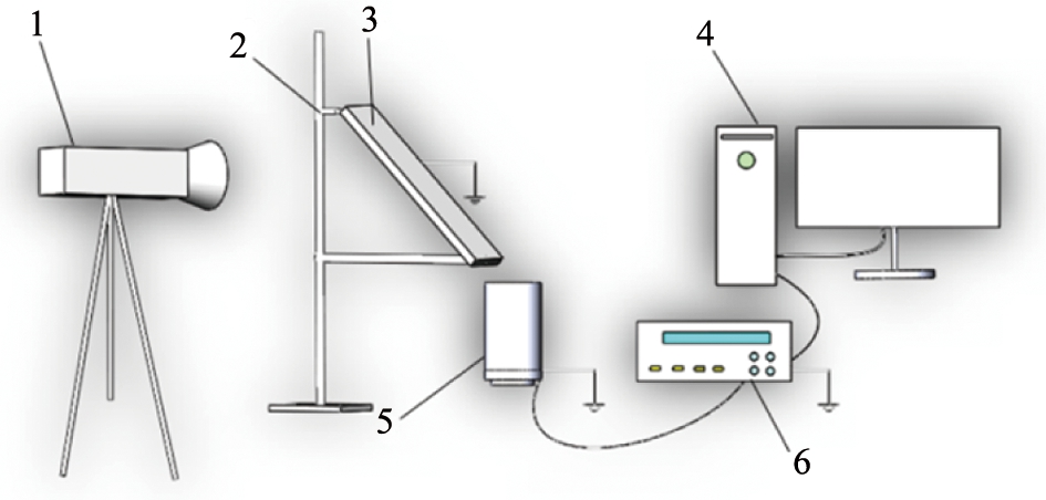 目前,采用颗粒沿倾斜金属滑板滑动是研究单颗粒静电带电特性的主要方法之一[15-16]。 图5是单颗粒滑动摩擦带电实验示意图,其中实验设备包括滑板3(不锈钢,300 mm×10 mm)、 法拉第杯5(日本ADVANTEST TR8031)、 静电计6(日本ADVANTEST R8252)和电子天平(德国Sartorius CPA26P-0CE)等。单颗粒滑动摩擦实验时,在如图3所示的4种PET颗粒(PET1—PET4)中各随机取样2粒(分别编号1#和2#)作为实验测试对象。用绝缘镊子夹取PET颗粒放在滑板上方(滑板倾斜角度为40°),颗粒在重力作用下滑入法拉第杯中,利用静电计测试颗粒电荷量,同一颗粒重复滑动实验10次,记录电荷量Q的最大值,其中测试环境温度为(22±2)℃,相对湿度为(21±3)%;颗粒荷质比(单位质量携带的静电量)通过颗粒电荷量Q与颗粒质量m比值获得。