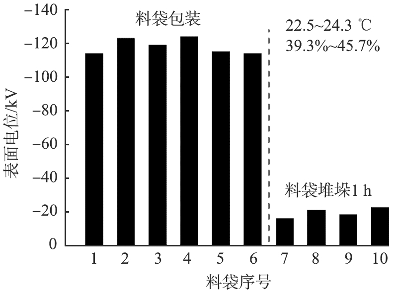 图8 某瓶级聚酯切片包装过程料袋表面电位