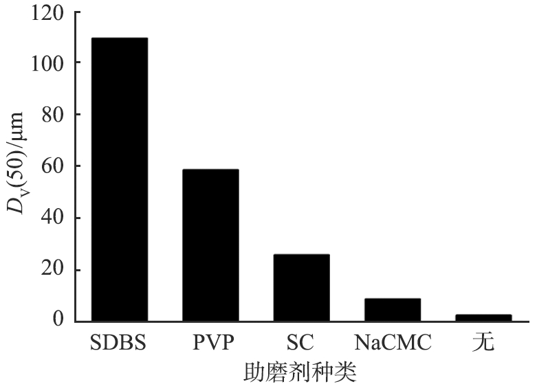 4)与不添加助磨剂相比, 添加SDBS、 PVP、 SC、 NaCMC 4种助磨剂溶液后, 产物的粒径均有所增大。