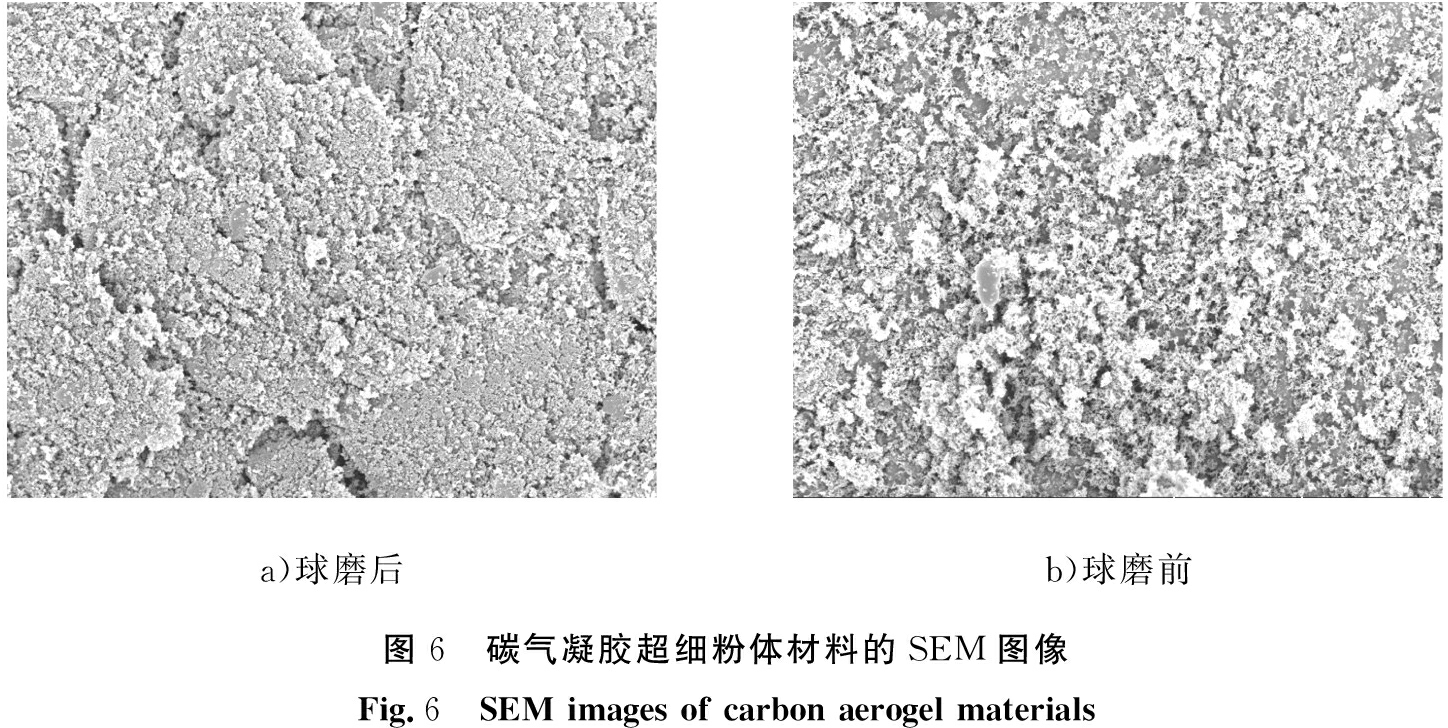 a)球磨后b)球磨前图6 碳气凝胶超细粉体材料的SEM图像Fig.6 SEM images of carbon aerogel materials