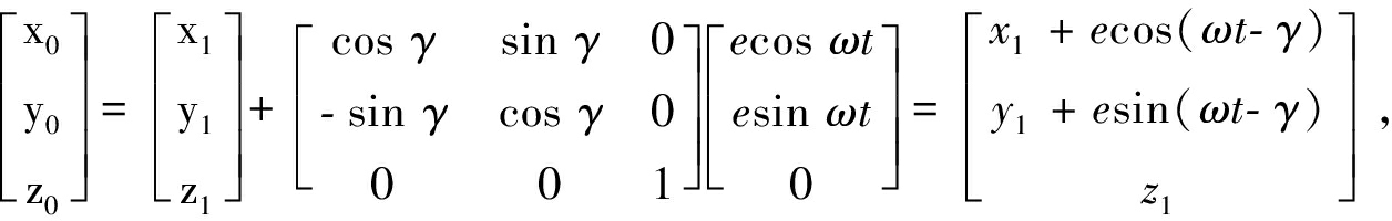 由于偏心块的动能计算十分复杂,因此本文中采用坐标变换求解其位置,然后进行求导得到其速度,再计算偏心块动能。偏心块安装在内锥上,其运动后的绝对坐标为