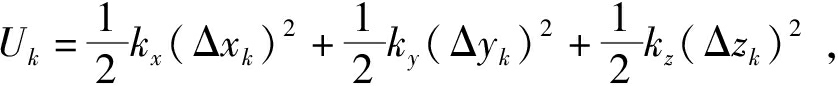 式中:Uk为弹簧的势能,J;kx、ky、kz为弹簧在X、Y、Z方向的刚度,N/m;xk1、yk1、zk1为在X、Y、Z方向的变形后的坐标, m;xk、yk、zk为在X、Y、Z方向的变形前的坐标, m。
