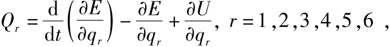 式中:Qr为对第r个广义坐标的广义力,N;t为时间,s;E为系统的动能,J;qr为第r个自由度的广义坐标;U为系统的势能,J。