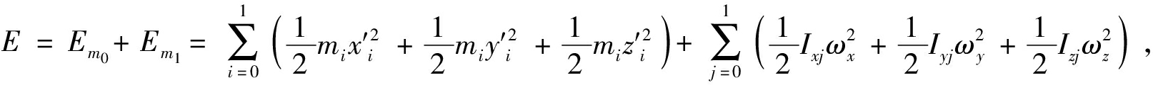 式中:Em0为偏心块的动能,J;Em1为内锥的动能,J;i为0,1; x0、y0、z0为偏心块在X、Y、Z方向的位移,m;x1、y1、z1为内锥在X、Y、Z方向的位移,m;j为0,1;Ix0、Iy0、Iz0为偏心块在X、Y、Z方向的转动惯量, kg·m2;Ix1,Iy1,Iy1为内锥在X、Y、Z方向的转动惯量,kg·m2; j为0,1;ωx、ωy、ωz为内锥和偏心块在X、Y、Z方向的角速度,rad/s;α、β、γ为X、Y、Z方向上的转动角度, rad/s。