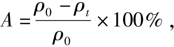 在烧杯中加入100 mL的RhB溶液和一定量的吸附剂,匀速搅拌。每隔一定时间取样过滤分离,取滤液用紫外-可见分光光度计测吸光度,计算吸附率A和吸附容量q: