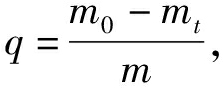 式中:ρ0为RhB吸附前的初始质量浓度,mg/L;ρt为RhB在某t时刻吸附后的质量浓度,mg/L;m为加入的吸附剂质量,g;m0为RhB吸附前的初始质量,mg;mt为RhB在某t时刻吸附后的质量,mg。
