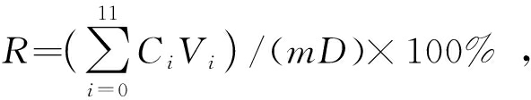 式中: R为药物回收率, %; Vi为ACI中第i(i=0, 1, …, 11)级OCT的体积, mL。 当R值为95%~105%时, 通过式(3)、 (4)分别计算Ed和Fp。